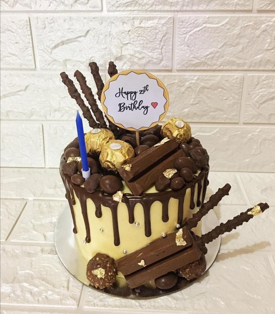 Имениннику останется только погасить свечи, загадать желание и попробовать на вкус столь сладкий шоколадный тортик...