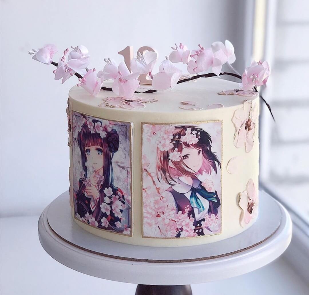 Нежнейший и красивый тортик для юных любительниц популярной в наше время аниме-культуры