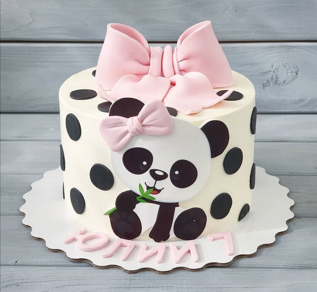 Безумно девчачий тортик с обаятельной пандой и большим розовым бантом