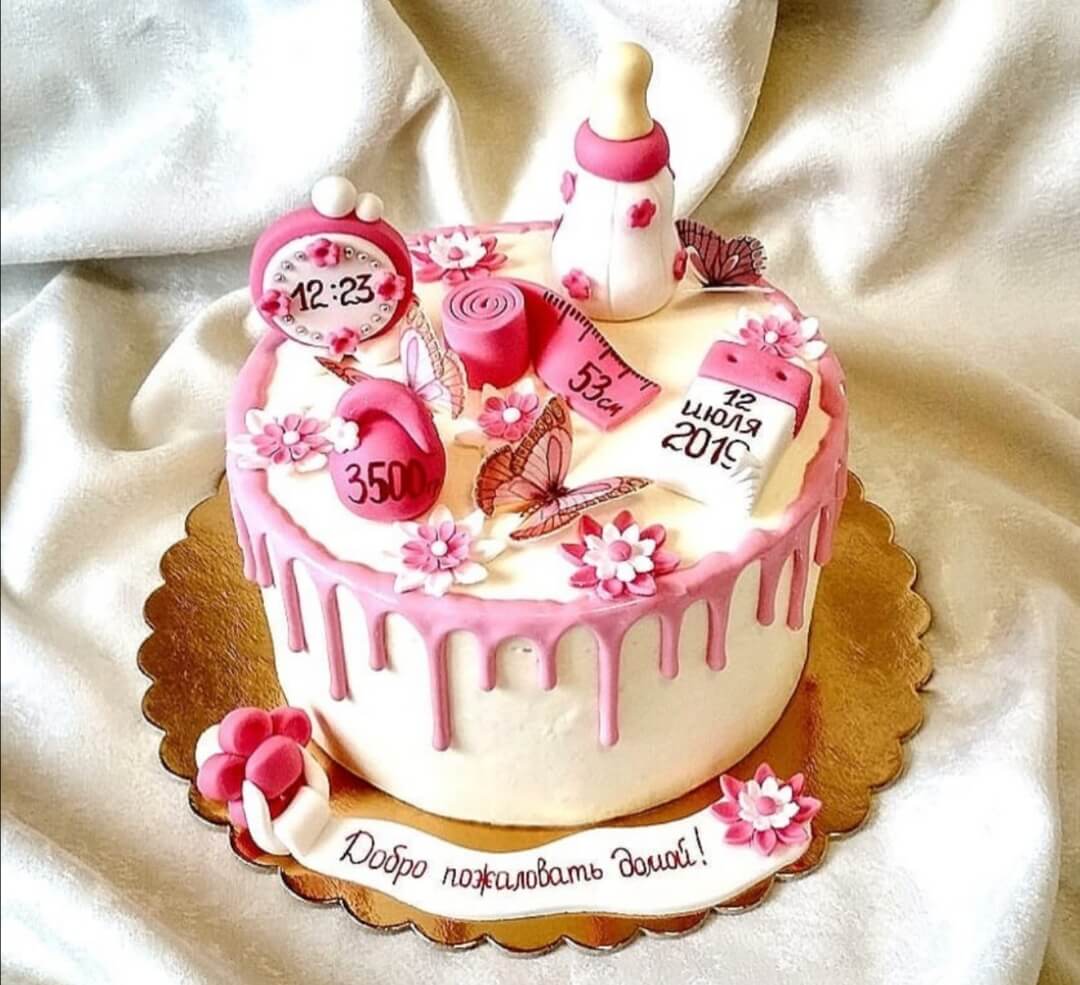 Трогательную встречу новорожденного малыша и его семьи можно отлично отметить вместе с нашим чудесным тортиком-метрикой